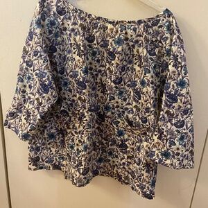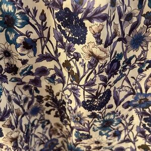 Beautiful blue and purple floral Liberty of London print t. Two front pockets and back tie. 100% cotton and in fabulous condition!