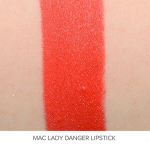 MAC Lady Danger Lipstick is a rich, orange-red with warm undertones and a semi-matte finish. It had nearly opaque pigmentation with a lightly creamy, slightly denser/thicker texture, though it didn't drag and didn't feel heavy on my lips. The color went on evenly, but I did notice a touch of product pulled into my deeper lip lines. Luckily, it wasn't noticeable from a normal viewing distance due the brightness and opacity of the shade itself. It wore well for six hours and was neither drying nor hydrating over time.