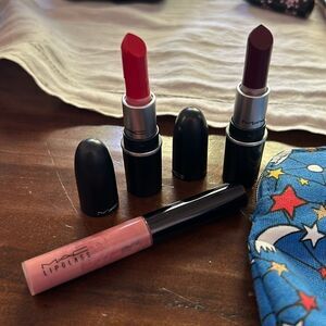 Mac 2 mini lipsticks and 1 lipglass l’Occitane new cosmetic bag