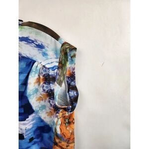 Mac And Me Blue Abstract Keyhole Back V-Neck Sleeveless Top Blouse Small