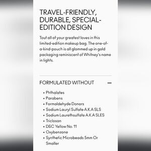Stylish gold cosmetic bag with a grid pattern. Features MAC and Whitney Houston branding.