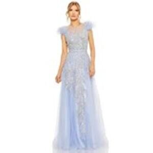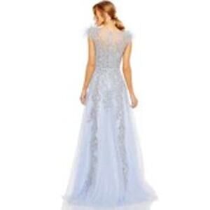Mac Dougall 20520 High neck feathered shoulder gown - Size 12 - Periwinkle Blue