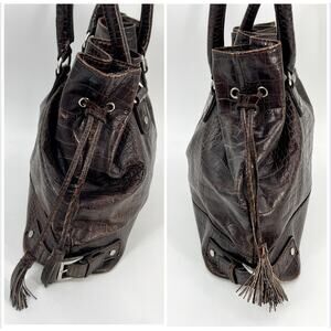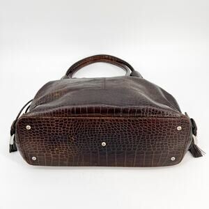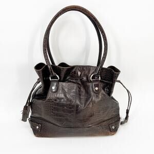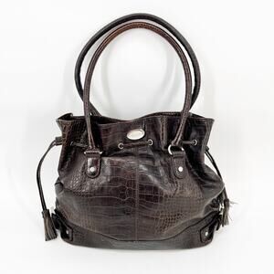 Mac Douglas Tote Shoulder Bag Dark Brown Crocodile Embossed Leather Large READ