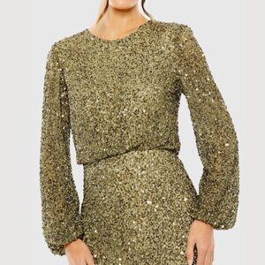 Mac Duggal 10044 Size 12 Olive Green Sequin Beaded Long Sleeve Maxi Gown Dress