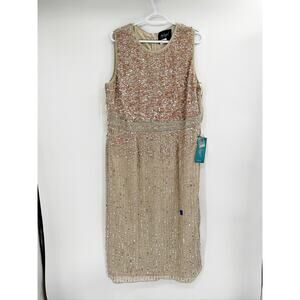 Mac Duggal 10509 Sleeveless High Neck Beaded Nude Dress Size 16