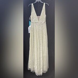 Mac Duggal 10700 NWT SEQUIN PLUNGE NECK GOWN