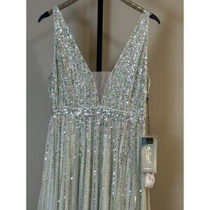 Mac Duggal 10700 Soft Tie Sleeveless V Neck Gown Size 12 Nwt
