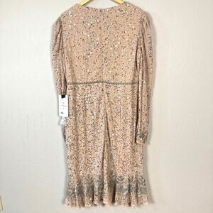 Mac Duggal 10740 Sequin Midi Formal Dress Size 16 Nude Silver Embellished Party