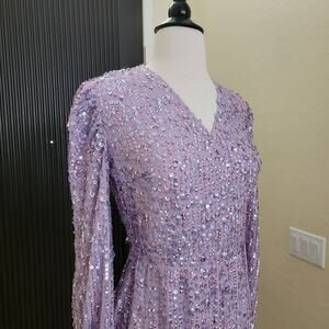 Mac Duggal 107641 Lavender Purple 2 Sequin Lilac Long Sleeve Midi Dress Evening