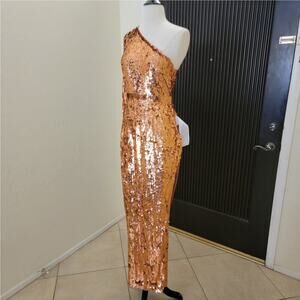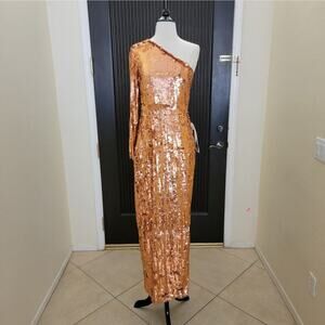 Mac Duggal 10788 Copper 8 Sequin One Sleeve Column Evening Dress Gown Formal