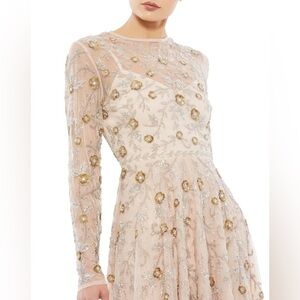 Mac Duggal 10799 NWOT BEADED ILLUSION HIGH NECK LONG SLEEVE A LINE GOWN