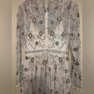 Intricate hand-beaded floral embellishments throughout the bodice and skirt