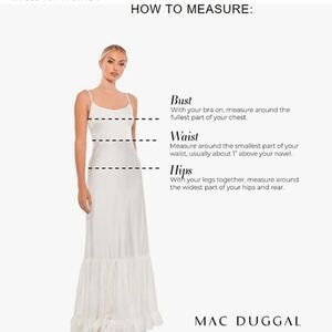 Sizing tip: Every designer cuts their dresses differently & according to their size chart. Please measure yourself (in inches) before ordering & follow our size chart (pictured under the main dress picture). If you are in between sizes or unsure of the fit, choose a size up, as it is easier for your seamstress to take in rather than out. Please refer to the size chart in our images section.