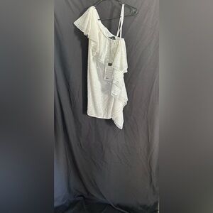 Flirty, fully-sequined one-shoulder mini dress with a dramatic cascading asymmetrical ruffle from shoulder to bottom hem.
