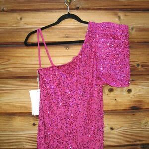 Mac Duggal 10912 Womens Pink EMBELLISHED PUFF ONE SHOULDER COLUMN GOWN Dress