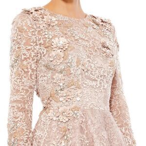 Mac Duggal 11121 Womens Pink EMBELLISHED ILLUSION LONG SLEEVE A LINE GOWN