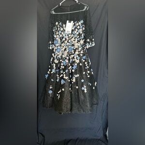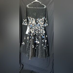 Mac Duggal 11161 NWT Floral Embroidered A-Line Tea-Length Cocktail Dress