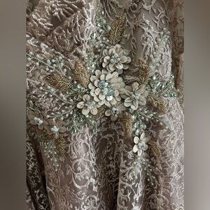Sheer embroidered overlay; 100% polyester lining