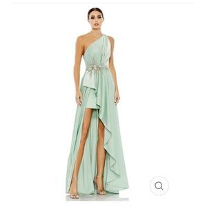 Mac Duggal 11262 sage One Shoulder Grecian High Low Gown Dress Prom NWT 4