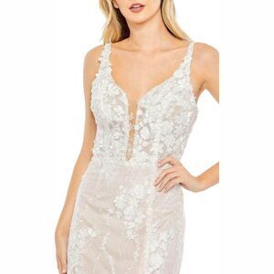 Mac Duggal 11331 Womens Size 12 White Floral Lace Up Corset Back Maxi Gown Dress