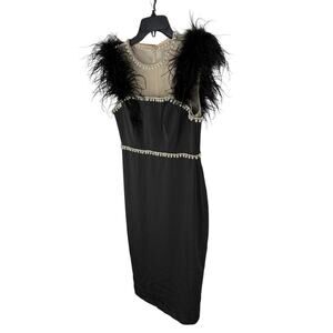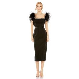 Mac Duggal 11438 Embellished Midi Sheath Dress Feather Cocktail Party Formal 4