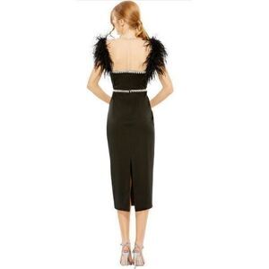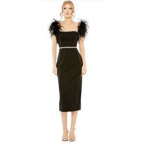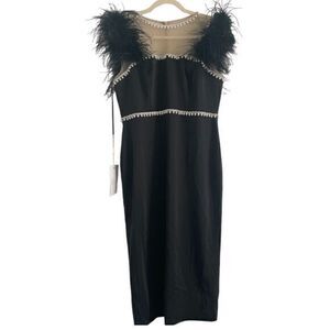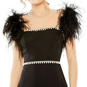 Mac Duggal 11438 Feather Cap Sleeve Pearl Embellished Sheath Dress 10 Black