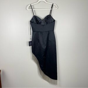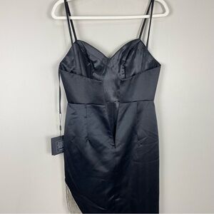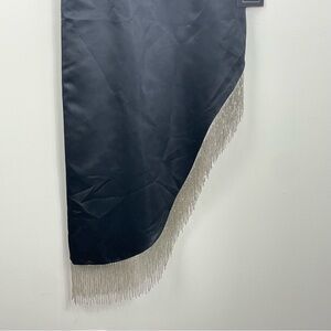 Mac Duggal 11650 Womens 2 Midi Dress Sequin Fringe Spaghetti Strap Black Silver