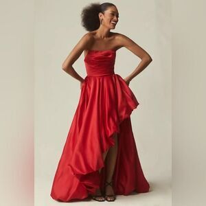 Mac Duggal 11685 Size 10 Red Strapless Ruched High Low Gown Maxi Formal Dress