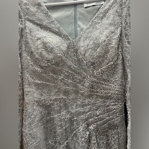 Mac Duggal 12408 NWOT LONG SHEER SLEEVE V-NECK MIDI DRESS