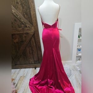 Mac Duggal 12428 Pink Charmeuse Rhinestone Strap Trumpet Gown NWOT size 6