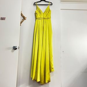 Mac Duggal 12443 V-Neck High Slit Satin Gown Chartruese size 8