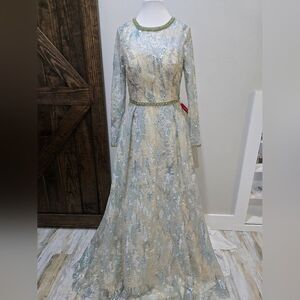 Mac Duggal 12460 Embellished Lace Evening Gown NWT size 8 Platinum