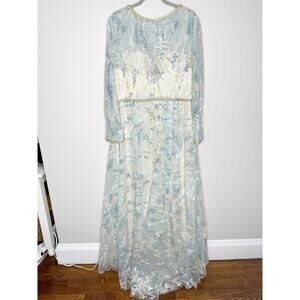 Mac Duggal 12460 Platinum Jewel Neckline Lace Formal Dress Size 16 $798
