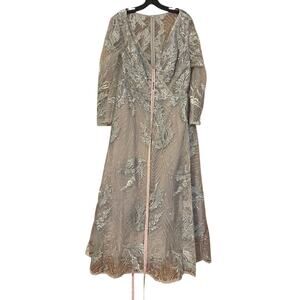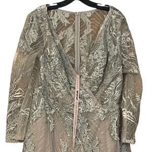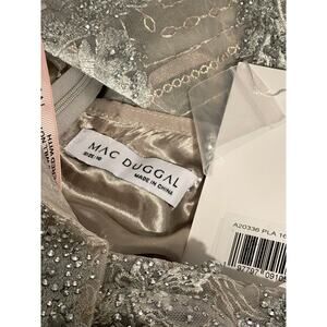 Mac Duggal Size 16 Style A20336 NEW Platinum Silver Embellished Wrap Over 3/4 Sleeve Midi Dress New With Tag
