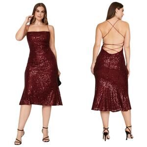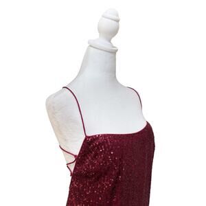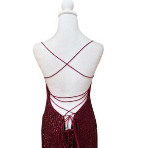 This dazzling fully sequined dress features a silhouette with a deep angular neckline supported by spaghetti straps. The dress has a plaid that is beautifully flaunted at the center hem.