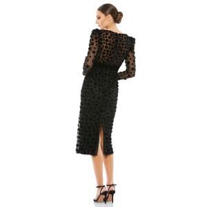 Mac Duggal 18 black Embellished V Neck Illusion Long Sleeve Column Midi dress