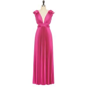 A showstopping satin gown from Mac Duggal designed for high-impact entrances. Style 26729 features a plunging V-neck bodice with soft pleating, ruffled shoulder details, and a flowing A-line skirt that moves beautifully. Side cutouts and a dramatic open back with lace-up detailing add modern edge, while the rich fuchsia satin brings bold, polished glamour. Perfect for formal events, galas, and statement-making celebrations.