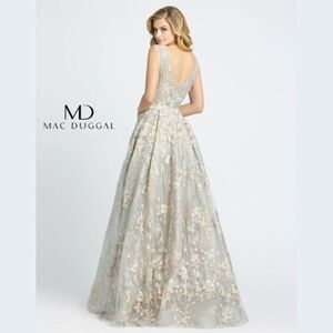 Mac Duggal 20131 Size 10 Silver Pink Pastel Floral Embroidered V-Neck Gown Dress
