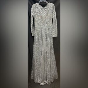 Mac Duggal 20189 NWT EMBELLISHED ILLUSION LONG SLEEVE WRAP OVER A LINE GOWN