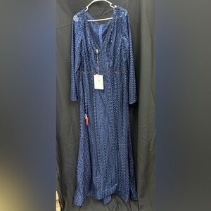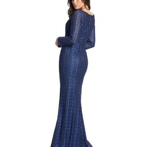 Mac Duggal 20271 NWT EMBROIDERED LONG SLEEVE V NECK TRUMPET GOWN
