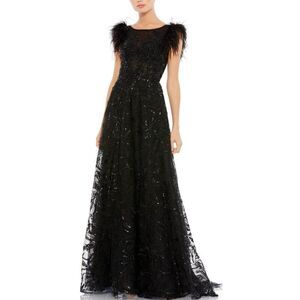 Mac Duggal 20296 Size 2 Black Embellished Feather Long Ballgown Gown Maxi Dress