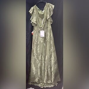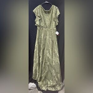 Mac Duggal 20310 NWT EMBROIDERED FLUTTER SLEEVE V-NECK GOWN