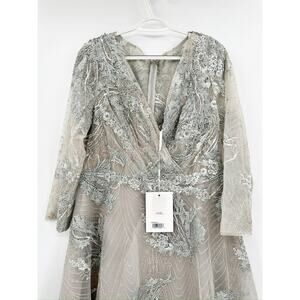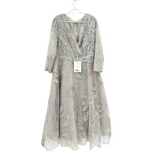Mac Duggal 20336 Platinum Embellished Wrap Over 3/4 Sleeve Dress Size 12 FLAW