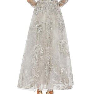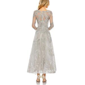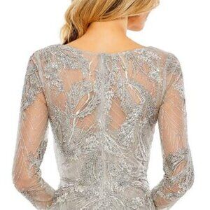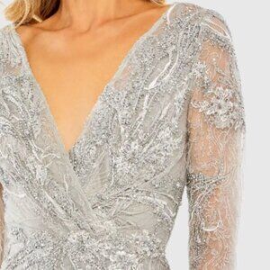 macduggal gown black tie prom pageant wedding guest special occasion event charity gala recital performance military ball fire and ice cruise birthday sorority formal photoshoot photo shoot engagement evening daytime day party as seen on red carpet classic elegant diggal nwt brand new old hollywood glam compliments celebrity bar bat mitzvah debutante designer luxury vacation cocktail homecoming mother of the bride groom motb motg weddings full fit and flare length banquet award ceremony romantic feminine holiday new years eve year's opera long stunning bridal shower jeweled jewel sequin sequined rhinestone rhinestones beads jeweled jewels beaded embellished beading embellishment floral flowers flower rehearsal dinner floor long sleeve lace lacey lacy muted soft vintage shade color classic spring summer winter garden plus vneck v neck neckline maximalist a-line aline gray new nwt womens size 8 __
