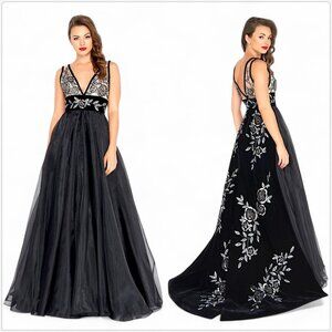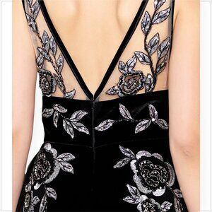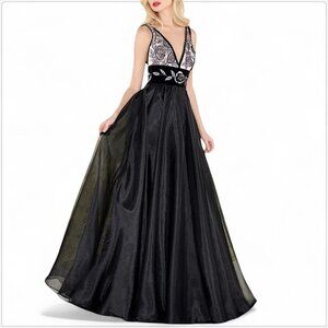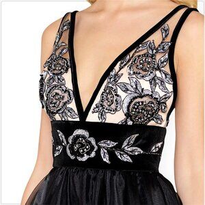 Mac Duggal 2035 Black Noir Sleeveless Formal Ball Gown Dress Velvet Beaded NWT 4
