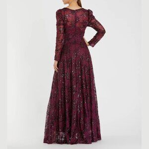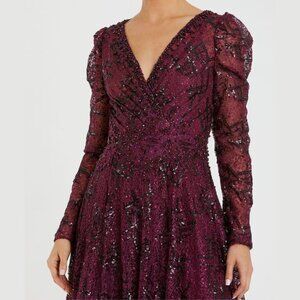 Mac Duggal 20353 Size 14 Red Embellished V-Neck Long Sleeve A-Line Gown Dress