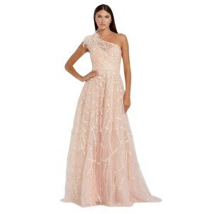 Mac Duggal 20389 Size 18 Peach Pink Embellished One Shoulder Feather Gown Dress