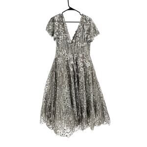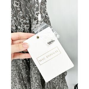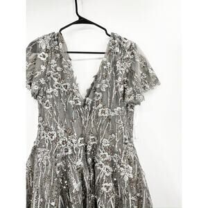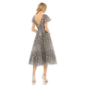 Mac Duggal 20392 Gunmetal Embellished Butterfly Fit and Flare Tea-Length Dress