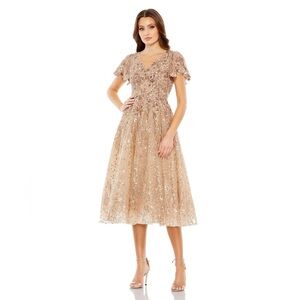 Mac Duggal 20392 NWOT EMBELLISHED BUTTERFLY FIT AND FLARE TEA-LENGTH DRESS
