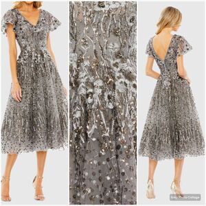 Mac Duggal 20392 Womens EMBELLISHED BUTTERFLY FIT AND FLARE TEA-LENGTH DRESS 10